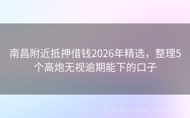 南昌附近抵押借钱2026年精选,整理5个高炮无视逾期能下的口子