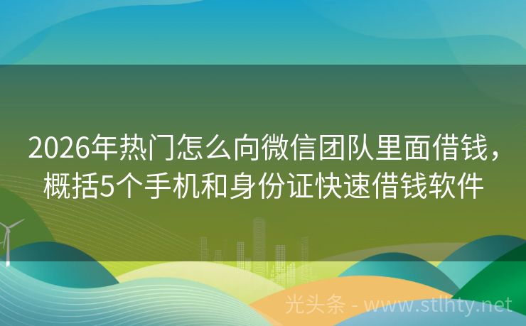 2026年热门怎么向微信团队里面借钱,概括5个手机和身份证快速借钱软件