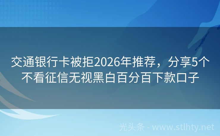 “大家好!2026年,想要顺利过贷款,选对平台是关键!我就为大家详细介绍几个热门的交通银行卡被拒,让您在申请贷款时更加得心应手,就让我们一起来看看这五个交通银行卡被拒的详细信息吧!”