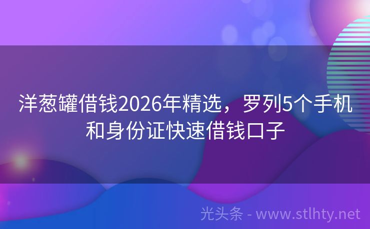 洋葱罐借钱2026年精选,罗列5个手机和身份证快速借钱口子