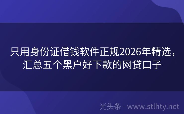 只用身份证借钱软件正规2026年精选,汇总五个黑户好下款的网贷口子