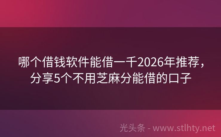 哪个借钱软件能借一千2026年推荐,分享5个不用芝麻分能借的口子