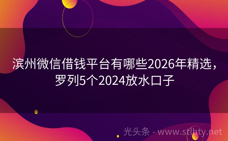 滨州微信借钱平台有哪些2026年精选,罗列5个2024放水口子