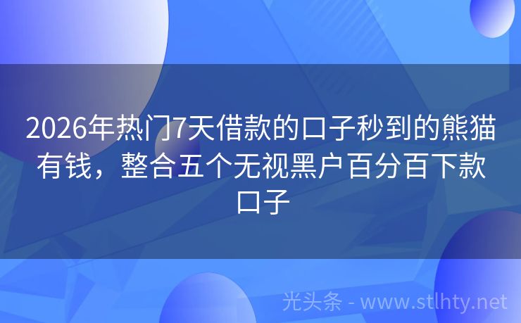 2026年热门7天借款的口子秒到的熊猫有钱,整合五个无视黑户百分百下款口子