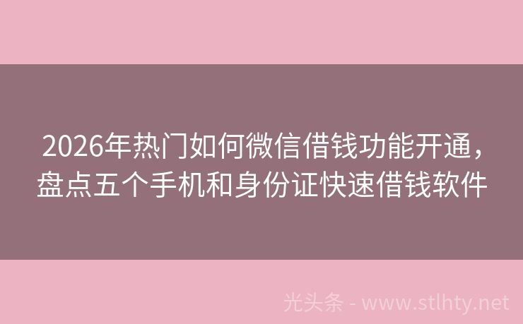 2026年热门如何微信借钱功能开通,盘点五个手机和身份证快速借钱软件