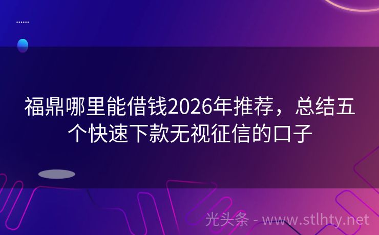 2026来,随着金融科技的不断发展,越来越多的人开始关注到个人征信的重要性,征信良好的人,往往能在贷款申请时享受到更低的利率和更高的额度,就让我们围绕“的福鼎哪里能借钱”这一主题,为大家推荐几个热门的的福鼎哪里能借钱,这些平台不仅审批速度快,而且额度灵活,服务周到,相信一定能满足您的贷款需求。