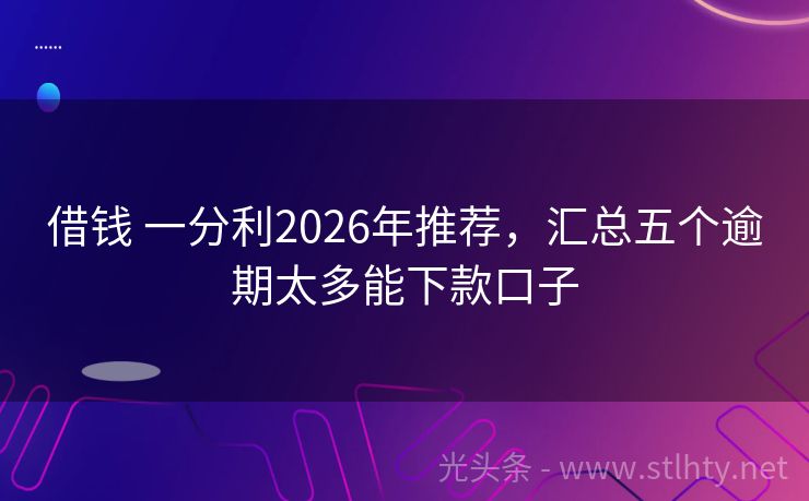 借钱 一分利2026年推荐,汇总五个逾期太多能下款口子
