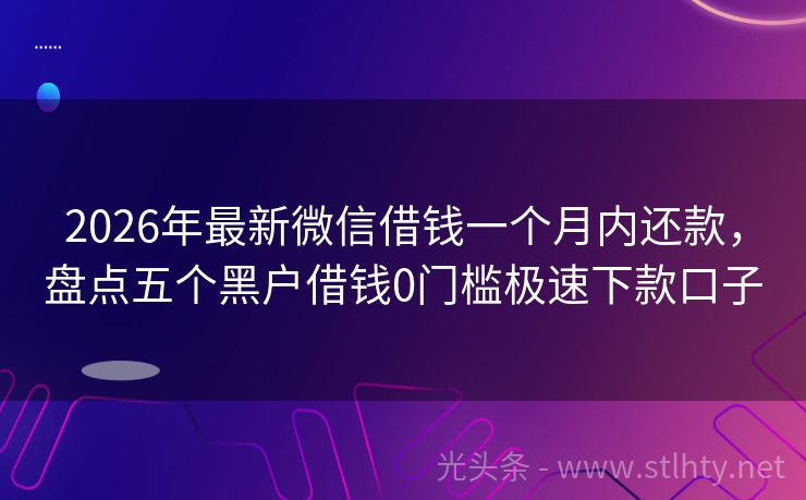 2026年最新微信借钱一个月内还款,盘点五个黑户借钱0门槛极速下款口子
