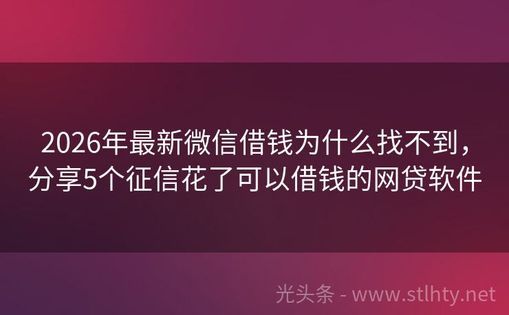 2026年最新微信借钱为什么找不到,分享5个征信花了可以借钱的网贷软件