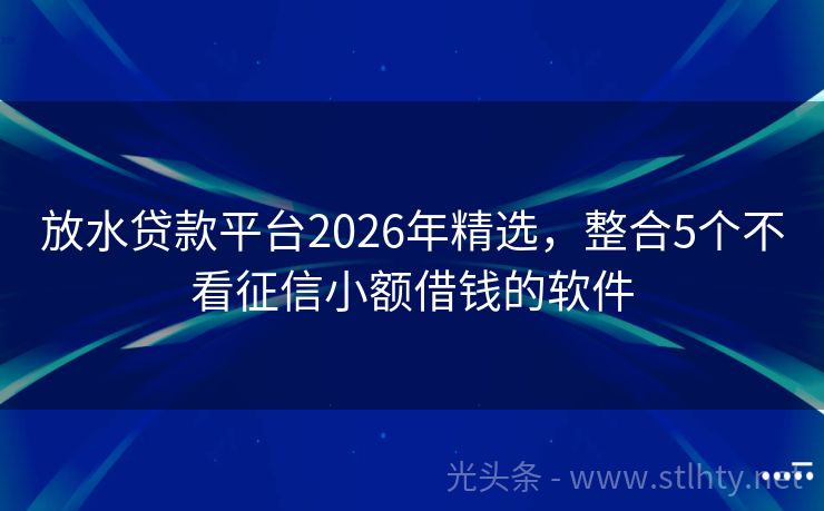 放水贷款平台2026年精选,整合5个不看征信小额借钱的软件