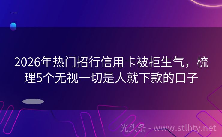2026年热门招行信用卡被拒生气,梳理5个无视一切是人就下款的口子