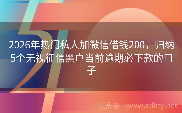 2026年热门私人加微信借钱200,归纳5个无视征信黑户当前逾期必下款的口子