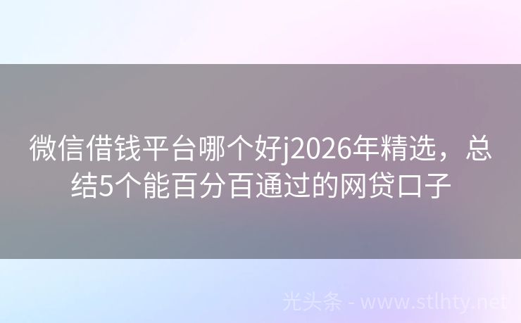 微信借钱平台哪个好j2026年精选,总结5个能百分百通过的网贷口子