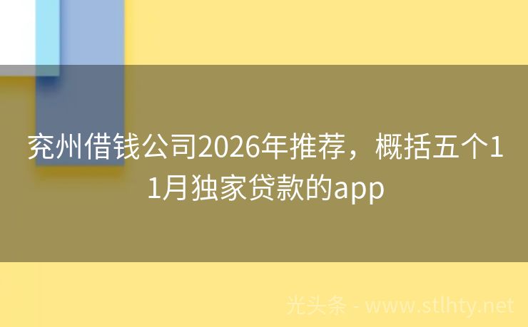 兖州借钱公司2026年推荐,概括五个11月独家贷款的app