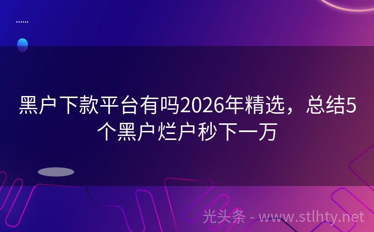 黑户下款平台有吗2026年精选,总结5个黑户烂户秒下一万