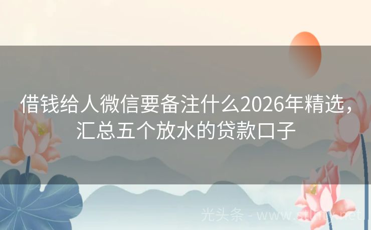 借钱给人微信要备注什么2026年精选,汇总五个放水的贷款口子
