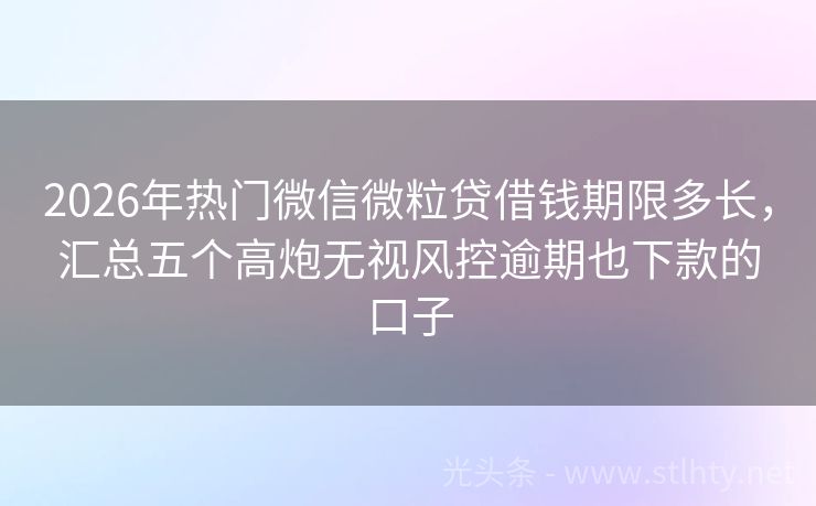 2026年热门微信微粒贷借钱期限多长,汇总五个高炮无视风控逾期也下款的口子