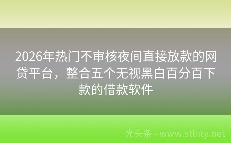 2026年热门不审核夜间直接放款的网贷平台,整合五个无视黑白百分百下款的借款软件