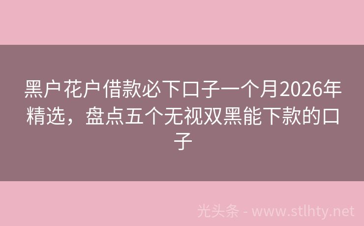黑户花户借款必下口子一个月2026年精选,盘点五个无视双黑能下款的口子