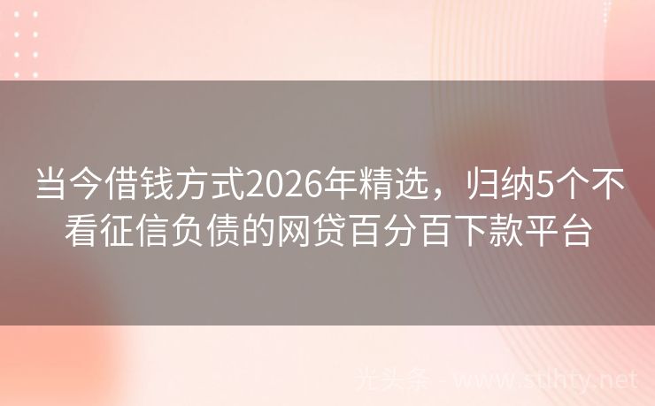 当今借钱方式2026年精选,归纳5个不看征信负债的网贷百分百下款平台