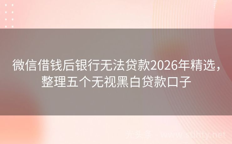微信借钱后银行无法贷款2026年精选,整理五个无视黑白贷款口子