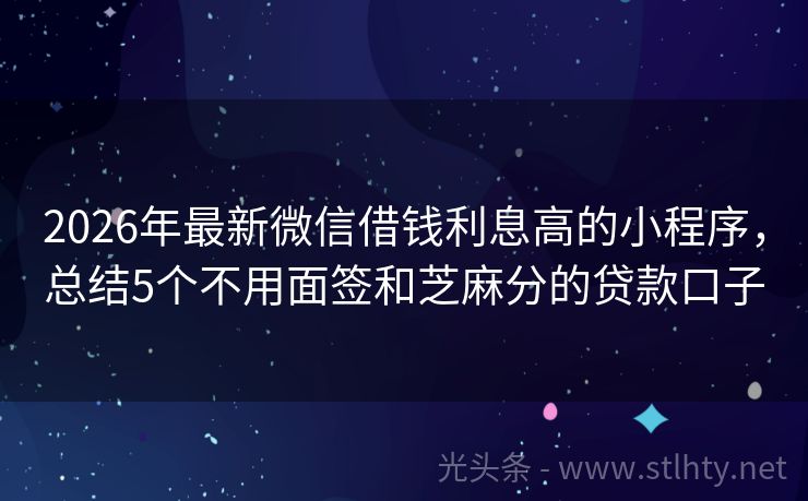 2026年最新微信借钱利息高的小程序,总结5个不用面签和芝麻分的贷款口子