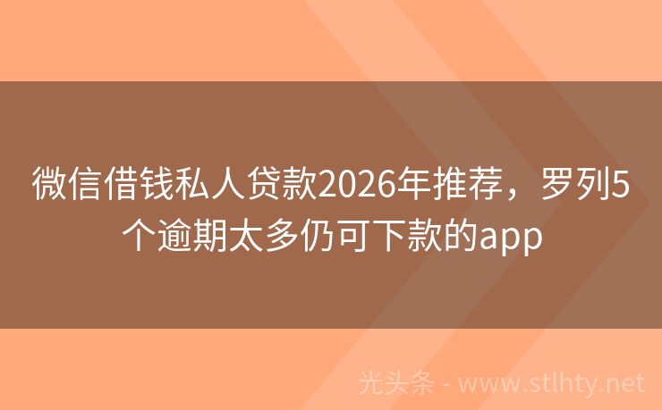 微信借钱私人贷款2026年推荐,罗列5个逾期太多仍可下款的app