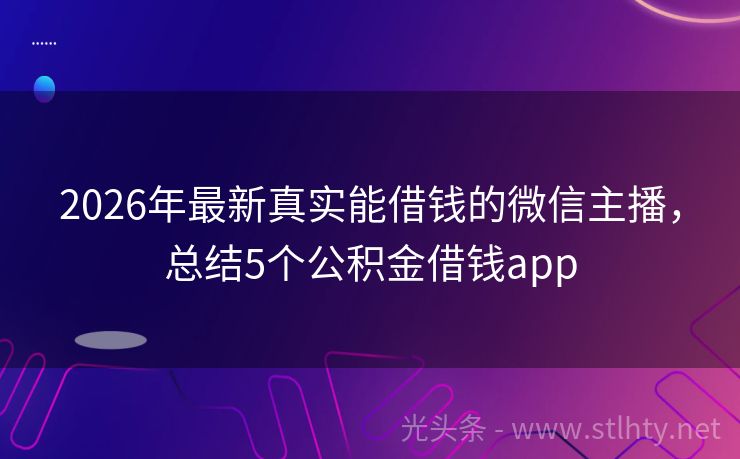 2026年最新真实能借钱的微信主播,总结5个公积金借钱app