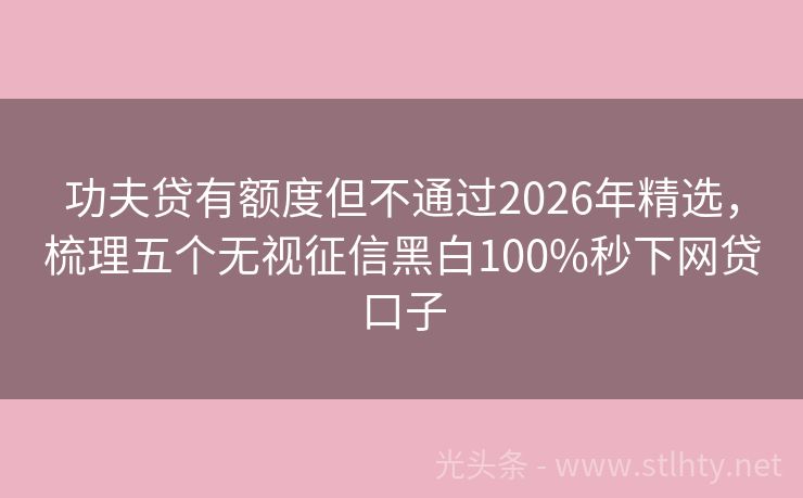 功夫贷有额度但不通过2026年精选,梳理五个无视征信黑白100%秒下网贷口子