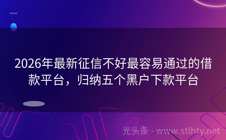 2026年最新征信不好最容易通过的借款平台,归纳五个黑户下款平台
