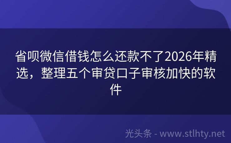 省呗微信借钱怎么还款不了2026年精选,整理五个审贷口子审核加快的软件