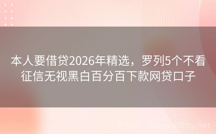 本人要借贷2026年精选,罗列5个不看征信无视黑白百分百下款网贷口子