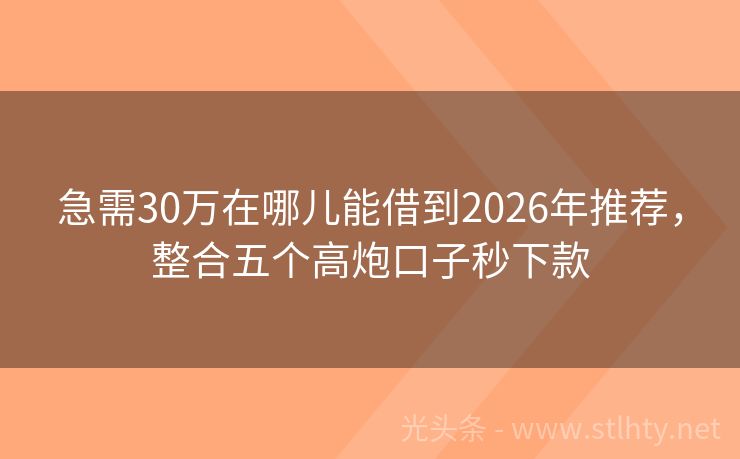 急需30万在哪儿能借到2026年推荐,整合五个高炮口子秒下款