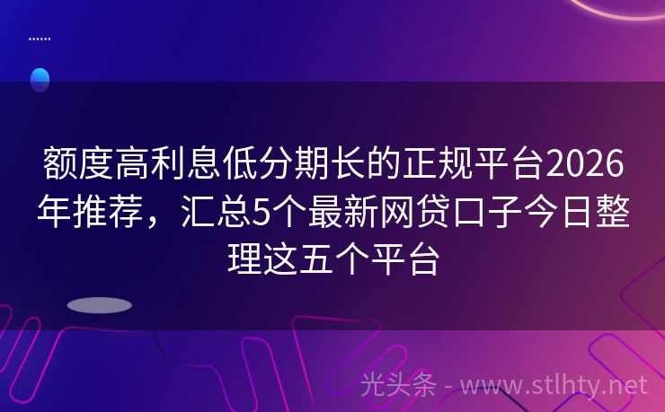 额度高利息低分期长的正规平台2026年推荐,汇总5个最新网贷口子今日整理这五个平台