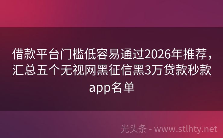 借款平台门槛低容易通过2026年推荐,汇总五个无视网黑征信黑3万贷款秒款app名单