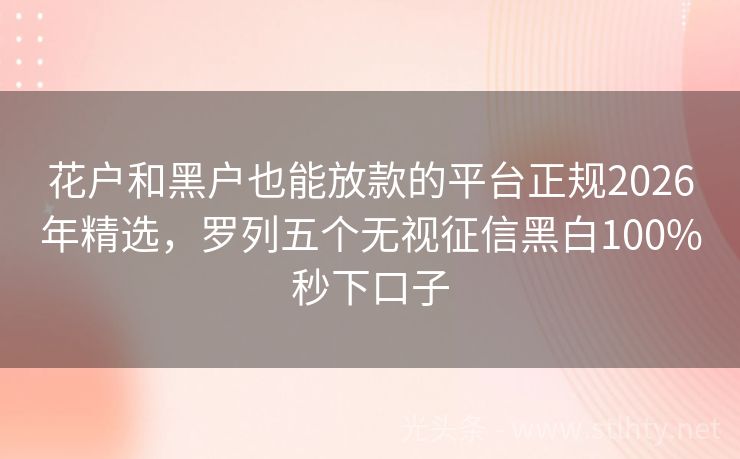 花户和黑户也能放款的平台正规2026年精选,罗列五个无视征信黑白100%秒下口子