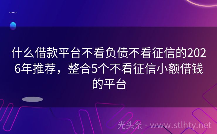 什么借款平台不看负债不看征信的2026年推荐,整合5个不看征信小额借钱的平台