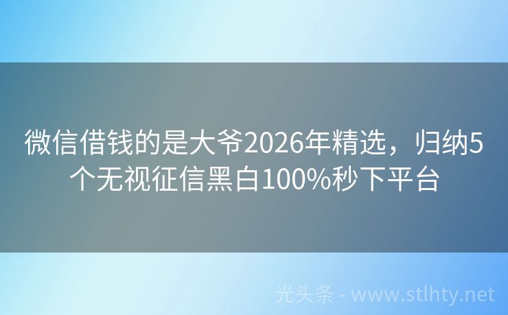 微信借钱的是大爷2026年精选,归纳5个无视征信黑白100%秒下平台