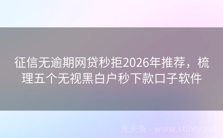 征信无逾期网贷秒拒2026年推荐,梳理五个无视黑白户秒下款口子软件
