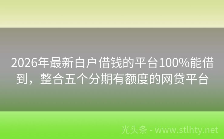 2026年最新白户借钱的平台100%能借到,整合五个分期有额度的网贷平台