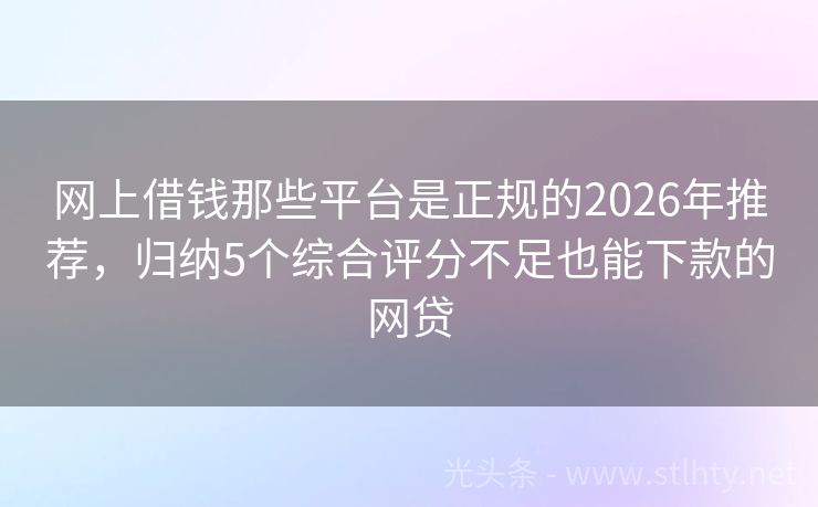 网上借钱那些平台是正规的2026年推荐,归纳5个综合评分不足也能下款的网贷