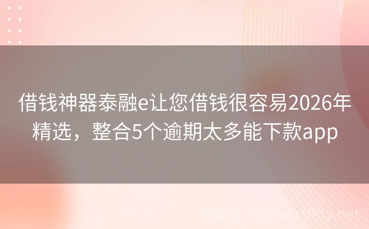 借钱神器泰融e让您借钱很容易2026年精选,整合5个逾期太多能下款app