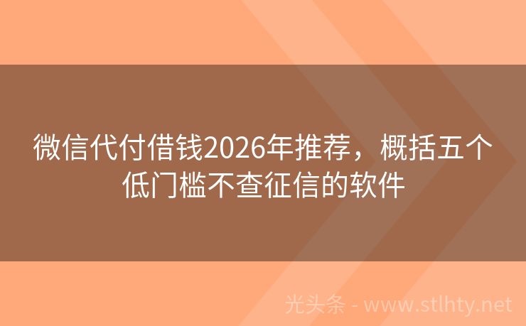 微信代付借钱2026年推荐,概括五个低门槛不查征信的软件