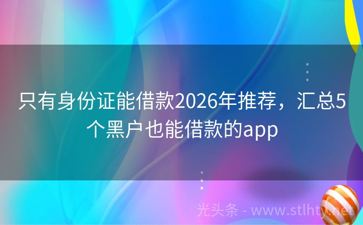 只有身份证能借款2026年推荐,汇总5个黑户也能借款的app