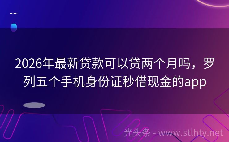 2026年最新贷款可以贷两个月吗,罗列五个手机身份证秒借现金的app