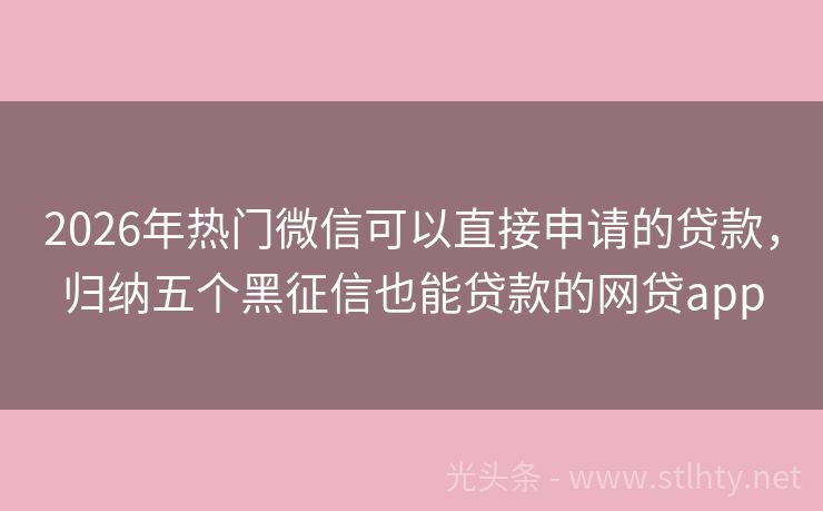 2026年热门微信可以直接申请的贷款,归纳五个黑征信也能贷款的网贷app
