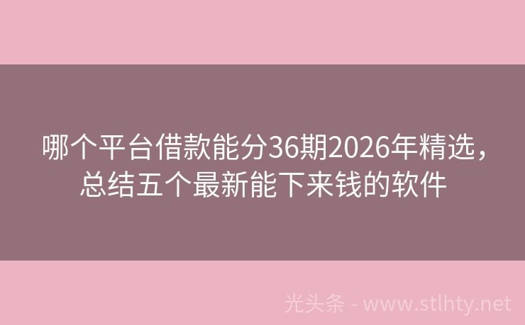 哪个平台借款能分36期2026年精选,总结五个最新能下来钱的软件