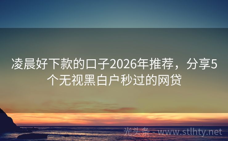 凌晨好下款的口子2026年推荐,分享5个无视黑白户秒过的网贷