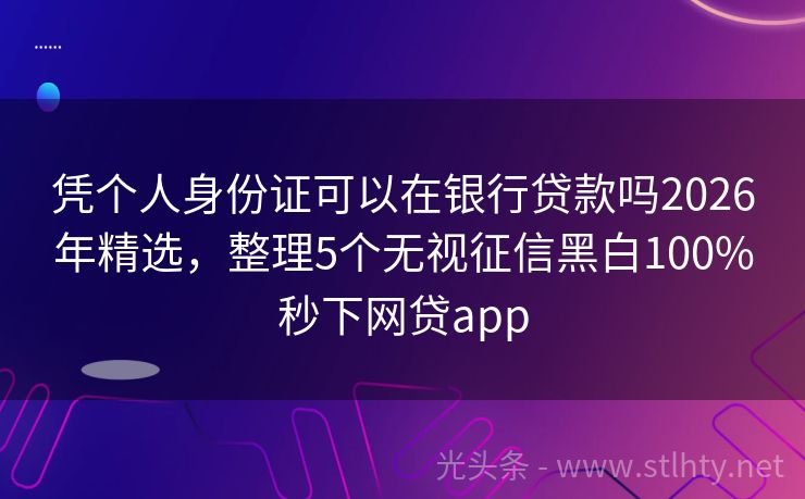 凭个人身份证可以在银行贷款吗2026年精选,整理5个无视征信黑白100%秒下网贷app