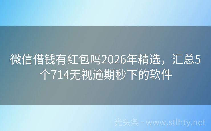 微信借钱有红包吗2026年精选,汇总5个714无视逾期秒下的软件